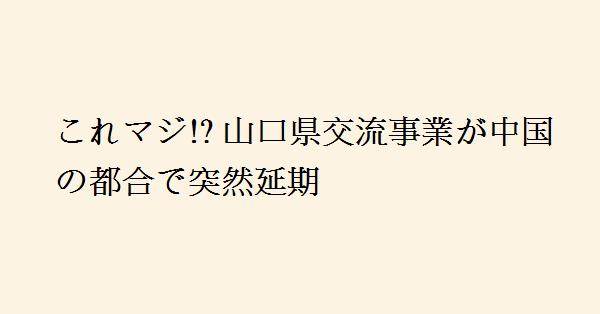 中国・山東省で予定されていた山口県と山東省、韓国・慶尚南道との交流事業が、中国側の都合で延期となりました。この交流は、1997年から山口県が友好協定を結んだ中国・山東省、姉妹提携を結んだ韓国・慶尚南道との間で行われているものです。今年は高齢者福祉をテーマに、12月17・18日に山東省で開催予定でしたが、山東省の担当者から「参加者が緊急で出張することになった」との連絡があり、延期となりました。