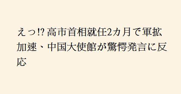 中国駐日大使館が公式X(旧ツイッター)で、日本の高市早苗首相や「軍拡」について批判的なコメントを発表しました。大使館は18日に行われた高官の非公式取材での発言を引用し、高市首相が台湾関連発言後も軍拡を加速させ、周辺勢力に対する「極めて危険なシグナル」を発していると主張しました。この投稿に対し、日本国内では中国側の主張への反発の声が多く、特に日本の軍事増強を中国の核兵器増強と比較する意見が目立ちます。