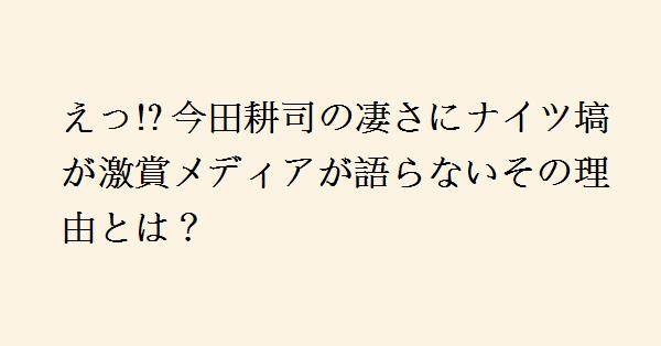 塙は今田の存在が欠かせないと強調し、彼の貢献がメディアで取り上げられないことに疑問を呈しました。