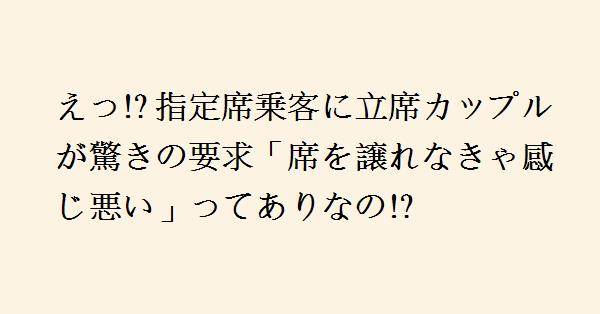 コメント:この事例は、公共交通の利用態度に関して重大な課題を露呈しています。投稿者が正当に購入した指定席を、立席券のカップルから譲渡を要求されるという非常識な行動は、公共の秩序とモラルを揺さぶる問題です。利用者間の中でこうした理不尽な要求が横行すれば、快適な移動手段としての信頼が失われます。