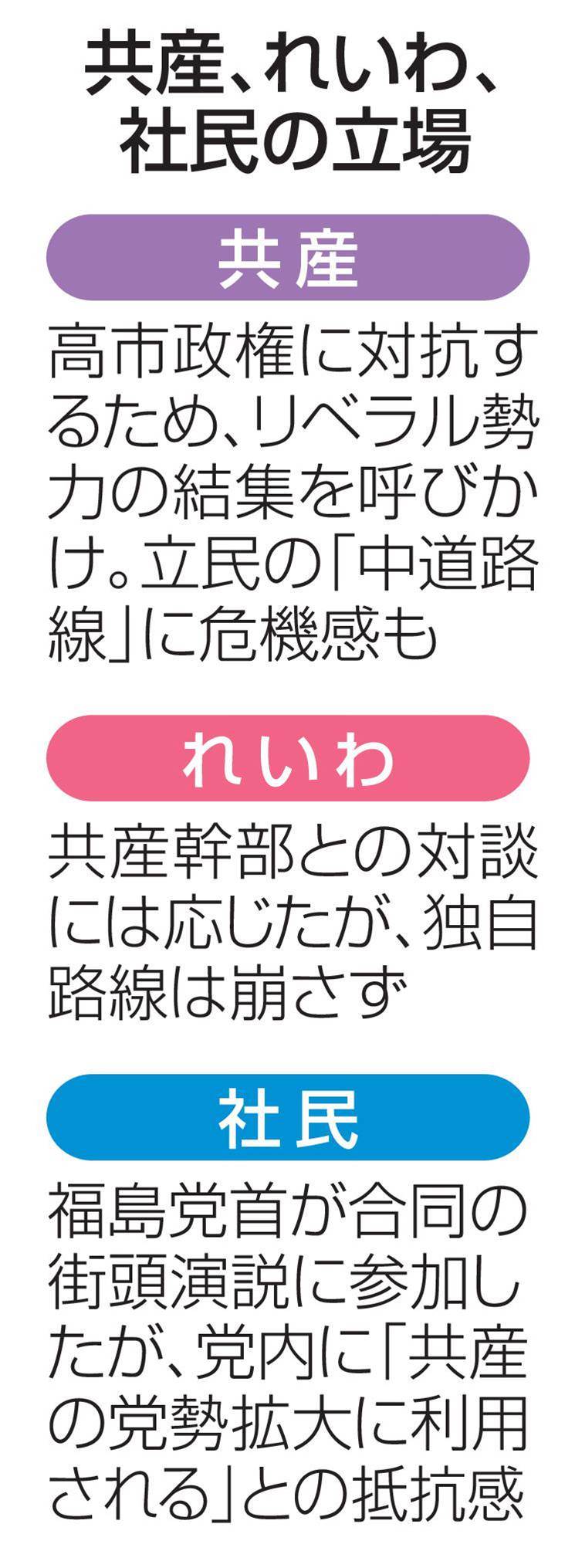 また、共産党はれいわとも接触し、18日に山添拓政策委員長と大石晃子共同代表が国会内で対談しましたが、大石氏は「独自でやるほうがいい」と距離を置いています。