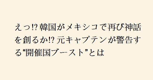 この状況を踏まえ、ホン・ミョンボ監督は、2002年の日韓W杯で体験した地の利について語り、メキシコ戦への万全の準備の必要性を強調している。