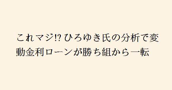 4、まだ何回か利上げしても変動の方が有利。それにローン金利が上がるリスク込みでの割安な金利設定だし、ひろゆきのような影響力のある人が安易に「負け組」とか言わない方が良い。