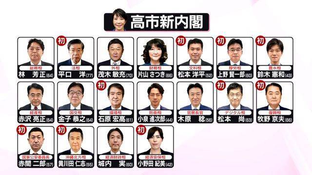 新総務相に林芳正氏、新財務相に片山さつき氏、新農水相に鈴木憲和氏などが任命されました。高市内閣の発足は同日夜に予定されています。