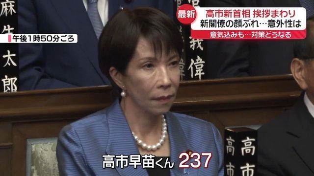 日本の政治に大きな変化があった日、2023年10月21日、高市早苗氏が日本の憲政史上初の女性首相に選ばれました。自民党本部で報道陣に笑顔を見せた後、彼女は午後1時の首班指名選挙で237票を獲得し、第104代首相となることが決定しました。その後、新閣僚たちが発表され、18人の顔ぶれが注目を集めました。新閣僚の中には新入閣の10人が含まれ、女性閣僚は高市氏を除き2人。