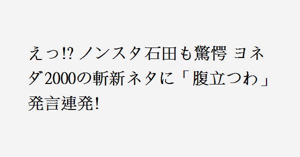 石田はそのネタの独自性を評価し、「新しい時代が来ている」と示唆した。