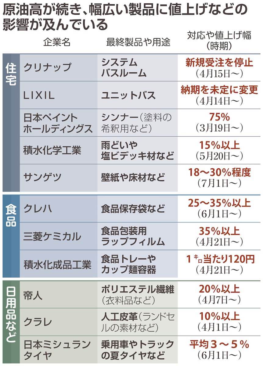 中東情勢を背景とした原油供給不安が、日本国内にも影響を及ぼしている。原油由来のナフサの国際価格は、米イスラエルによるイラン攻撃直前の2月末から約5割上昇。これにより、住宅資材や包装材、化学製品などに使用されるナフサ由来素材の供給リスクが顕在化している。大手メーカーでは既に浴槽やシステムバスの新規受注停止や大規模値上げが発生。また、塗料や接着剤を扱う現場では、価格高騰と仕入れ難が深刻化している。ナフサ由来製品を扱う国内製造業は約3割に上るとされ、サプライチェーン寸断の懸念も広がる。政府は在庫や代替調達で対応を急ぐが、流通段階の目詰まり解消や中小企業への支援が課題だ。