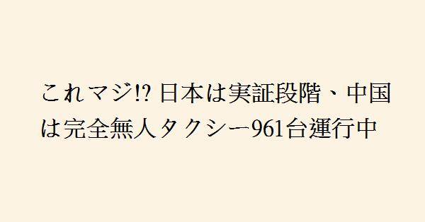現在は北京、上海、杭州など4都市で合計961台を運行中。料金は通常のタクシーと同額で、12.9kmの移動が32.8元で済む。日本では技術、規制、資本面で中国に対抗できず、開発が遅れている。