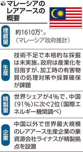 3、レアアースの採掘、精製を無秩序で技術的な裏付けのない中国に任せた場合、採掘周辺地域の土壌汚染、水質汚染、環境破壊は免れないでしょうマレーシアは自国の国土・環境・自然をよくよく考えて手を組む相手を選ばないと大変なことになりますよ