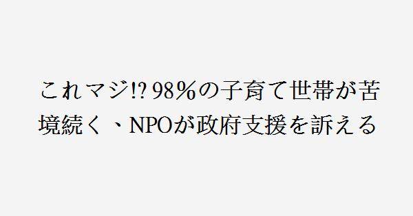 1、このNPOがそう思うなら自分たちの力でお金を稼ぎ循環させれば良い。ただクレクレと政府に訴えて何事かを成したと思っているなら考え方がさもしい。誰だって今よりお金がある生活が良いに決まっている。どうしても政府に訴え税金を取りたいならもっと個別具体的な提案をするべきです。