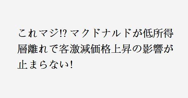 2、贅沢品でも無いけど、同じ値段を出した場合の選択肢が増えただけですよね。以前なら、他では無い価格での満足感があったけど、セットで1000円超えるなら何もハンバーガーじゃなくても良いし、もう少し予算に余裕があればグルメ系バーガーにシフトし、どうしてもマクドナルドという商品での競争力が低下してというその証拠に、ハッピーセットのオマケが大人も欲しがる景品になったり、コラボを増やすことになっている。