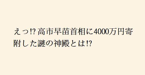 この宗教法人がどのように資金を捻出したのか、そしてその背後にある目的は不明である。記事ではこの団体が高市首相の重要な資金源だと報じられている。