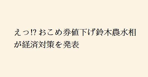 4、商品券は手数料とか引かれないしその方が消費者にとっては有り難い。お米券って国が専売していた時の名残なので今の時代では取っ払うべきだと思うけどここまで来ると消費者等の農協の我慢比べになってきましたね。お米券の期限の9月ならもう値崩れは起きているでしょうね。その頃には農相自体変わっているでしょうし