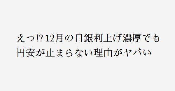 日銀が12月19日の会合で利上げを決める可能性が高く、市場もこれを織り込みつつありますが、日米金利差が縮小する可能性は低く、円高にはつながりにくい状況です。市場では日銀の利上げ余地の乏しさが意識され、円売りが進む可能性もあります。さらに、米国の年末休暇期間中は為替介入が困難となるため、円売りが膨らむリスクも考えられます。