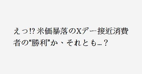 3、そもそも5キロ3000円ですら高い。今なら儲けられると踏んで業者連中が高値で買い付けたのが何かの間違い。米の価格が暴落し業者が赤字になろうがそんなの関係ないし、逆に高い米を買わされてる消費者にとっては大歓迎です。物には適正価格ってある訳で不作でもないのに倍以上の価格ってのは買わないという選択をされても仕方ない話です。