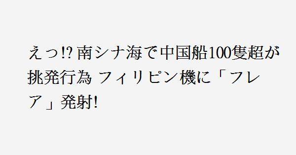 2、フィリピンには、海上民兵船団で威嚇ですか、更にフィリピンの哨戒機に対してフレアを撒き散らして針路を妨害したようですね、国際法無視でまさにやりたい放題です。フィリピンもこの暴挙を大々的に世界中に訴えて下さい。