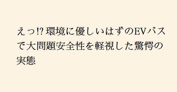 4、車体の設計や耐久性に関するノウハウが、国産・海外製含めてEVメーカーにどこまであるのか。モーターとバッテリーがあればEVができるわけではない。バス会社はEVというラベルだけを見て、走る・曲がる・止まるという車の基本部分を十分に吟味せずに導入しているのでしょうか。国も補助金を出すEVバスの安全基準を厳格にすべき。EV推進の実績づくりのために基準が甘いから、品質軽視のメーカーに足元を見られている気がします。