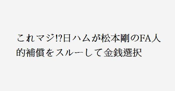 4、松本剛の打撃成績が低かったのもあり、巨人ファンからは「これで人的補償取られたら大損だ」みたいな声が多かったので、松本剛がかたみの狭い思いするのもかわいそうに思った結果が金銭補償になったのでは、と思う。松本剛にはその低い評価を覆す活躍を願っているのだが。