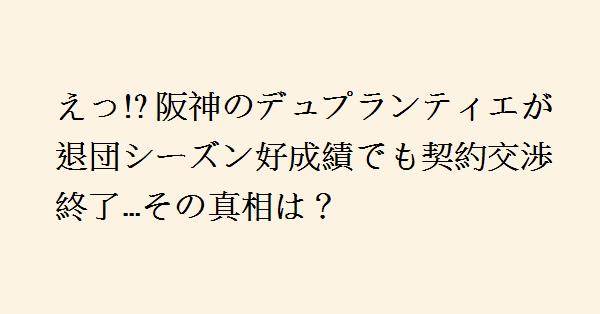 ジョン・デュプランティエ投手(31)が阪神を退団することが決まった。竹内孝行・球団副本部長が残留に向けた契約交渉を終了したと明らかにした。デュプランティエは今季、初のシーズンで15試合に登板し、6勝3敗、防御率1.39という印象的な成績を残した。しかし、2日に保留選手名簿から外れ、自由契約選手となった後も交渉は続けられていたが、最終的に合意に至らなかった。