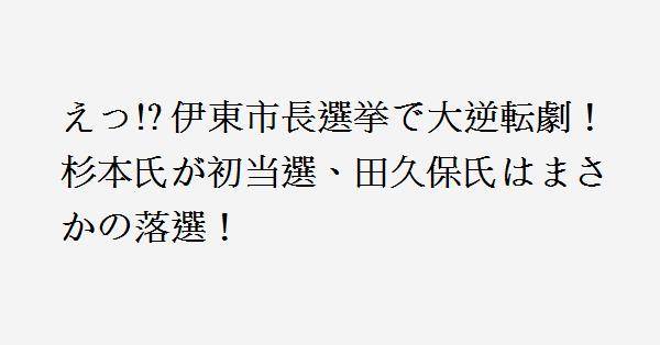伊東市長選挙では、杉本憲也氏が大接戦の末、初当選を果たしました。開票は14日午後11時05分に終了し、杉本氏は13,522票を獲得し、次点の小野達也氏の10,962票を大きく引き離しました。これにより、再選挙は回避されました。一方、前職の田久保真紀氏は4,131票にとどまり、落選という結果に終わりました。全体の投票総数は34,111票で、有効票は33,822票でした。