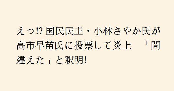2023年10月21日、国民民主党の小林さやか参院議員は参院本会議での首相指名選挙の決選投票において、党方針に反して自民党の高市早苗総裁に投票した。この行動は党内で物議を醸し、小林氏は「間違えて投票してしまった」と釈明したが、党幹部から厳重注意を受けた。小林氏は今年の夏の参院選で初めて当選したばかりで、今回の行動は新人議員としての不手際が目立つ結果となった。