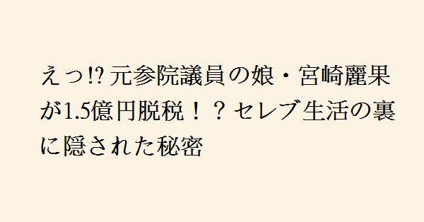 元参議院議員の娘で実業家・タレントの宮崎麗果が約1億5000万円を脱税したとして東京国税局に刑事告訴されました。事件は宮崎が4億9000万円の所得隠しを行い、実際の事業活動を偽って虚偽の領収書を作成していたことが発覚したものです。脱税で得た金はブランド品購入などに使用されていたとされ、国税局の調査後、宮崎はSNS上で謝罪しました。