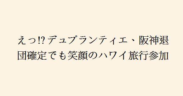 ジョン・デュプランティエ投手(31)は、阪神の優勝旅行にハワイで合流した。デュプランティエは今季、先発で6勝を挙げ、防御率1.39の素晴らしい成績を収め、優勝に大きく貢献したが、移籍先は同一リーグのライバルであるDeNAになる可能性が高い。球団幹部がハワイにいることから残留交渉が行われる可能性もあったが、阪神は13日に交渉終了を宣言し、正式に退団が決まった。