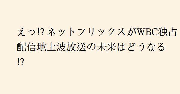 3、野球界の発展って考えるだけならお金を出してくれるNetflixにスポンサーになってもらった方が、流れるお金が大きい分、色々と設備投資とかもできて発展するよ。民放連は野球の裾野を広げるためにWBCを放映したいんじゃなくて、大谷を見る人に向けて放送したいんだろうし、儲かるのは大谷本人と大谷とスポンサー契約をしている企業なんじゃない?少なくとも野球界は発展しないと思う。どっちかというと、どこでも見れて、価格もNHKより安いネットフリックスの方が子供たちは見やすいよ。