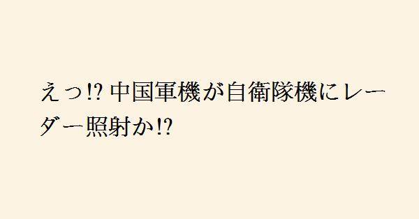 1、本当に中国軍機が日本機のレーダーを受けていたのなら、なぜ今まで黙っていたのかな。日本側からの発表よりも前に、中国側が言ってきそうな内容なんですがね。