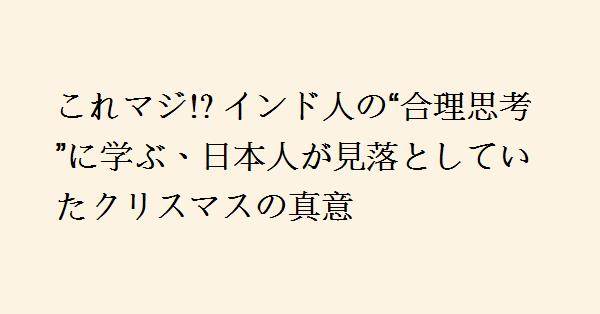 今回の記事は、文化の多様性とその理解の違いを掘り下げ、日本とインドのクリスマスの祝い方を比較しているが、これは単なる宗教観の違いではなく、文化的な柔軟性と実利重視という経験から来ている。日本人としてのアイデンティティーを考えるとき、宗教や文化に固執するのではなく、その文化の楽しさを受け入れ、それを自由に解釈することは大切である。日本もインドも、異文化への柔軟性が見られるが、インドのようにルールを無視するわけではなく、そのイベントを楽しむことで生活に多様性を持たせている。