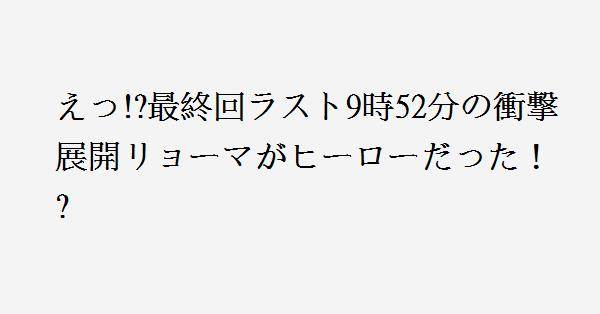 物語終盤、体育倉庫に閉じ込められた花音を誰かが救出する。「夜9時52分」に注目と告知されていた場面で、男子生徒風の声が響き、ネットでは助けた人物が花音と因縁のあるリョーマだと推測され、視聴者から多くのコメントが寄せられた。いじめの歴史が繰り返されるか、救いが差し伸べられるのか、緊張感と希望を感じる結末が話題となっている。