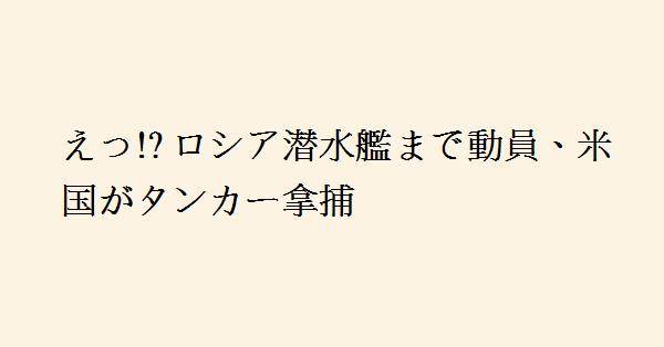 3、潜水艦なぞ護衛に付いたところで、海中からでは手も足も出せないだろうに・・・と思っていたら、速攻で拿捕とは驚きの展開です。本当に周辺でロシアの潜水艦がガードしていたのか怪しいものですが、アメリカは意にも介さなかったと。