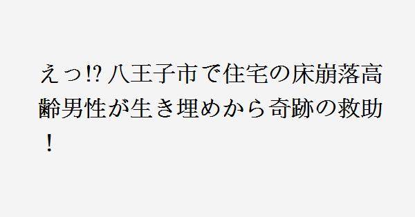 10月7日午後5時過ぎ、東京・八王子市大楽寺町の住宅で床の崩落が発生し、80代の男性住人が一時生き埋めとなりました。近隣住民から「室内からうめき声がする」との通報を受けて、消防隊が現場に急行。現場に到着すると、床が崩落している状態で、男性が埋まっていることが確認されました。男性は救助され、意識がある状態で病院へ搬送されましたが、怪我の程度は不明です。警視庁は事故の詳細な原因を調査中です。この住宅はJR西八王子駅から約2キロ、住宅密集地に位置しています。