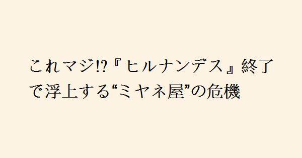 3、まあ、ナンチャンに1本100万週500万は高いよなぁ確かウッチャンの評価が上がりギャラの相場上がった際に、コンビ間での格差なくすために事務所の意向でウッチャンのギャラに相当するギャラがナンチャンにも設定されてるとか番組的にはナンチャン含めてレギュラー多く製作費としてはかなり厳しいだろうとは思うので、ナンチャンのギャラを大幅に下げれないなら終了もやむなしでしょうね