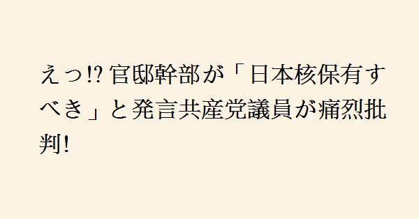 2、核武装をするかどうかについて意見を言うことさえできないなら、議論も検討もできない。意見を言ったら(しかもオフレコで)辞任しなきゃいけないなんてどこの専制国家だよ。実際に核武装しなくても、核武装できる能力と意志を示すだけでも抑止力になるし外交力にもなる。はじめから「何があっても何をされても絶対に核は持ちません」と宣言する必要など無い。
