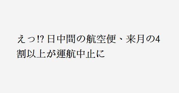 4、日中関係の現状を示す由々しき事態です。まだ4割しか削減してないのですか?まだ来日しているんですか?政府のお達しを何だと思っているんですか。航空機の運行を止めれば必然的に渡航自粛に繋がります。各個人の判断に任せていたらダメです。政府の意向に沿って断固とした措置を講じて下さい。そしたら我々日本人は心から感謝します。