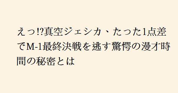 真空ジェシカは2025年のM-1グランプリ決勝で5番手として登場しましたが、1点差で最終決戦進出を逃しました。漫才の時間を手厚い「つかみ」に費やした結果、彼らの漫才は大会規定の4分を超えて4分57秒となり、これが最終的に彼らの得点844点に影響を与えました。審査員の博多華丸・大吉は、ネタ時間が長すぎたことを指摘し、もっと短くすれば加点の可能性があったと述べました。
