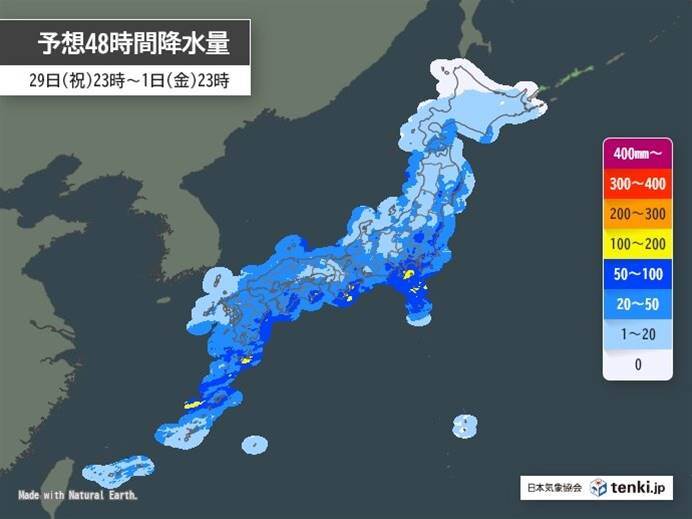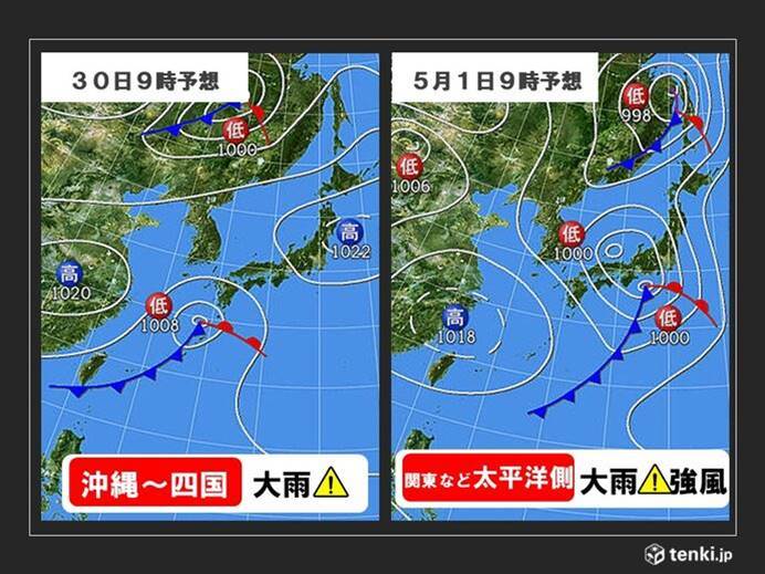 4月30日(木)から5月1日(金)にかけて、広範囲で警報級の大雨が予想されています。西日本では局地的に1時間に50mm以上の非常に激しい雨が降る可能性があり、最大24時間で鹿児島県では150mm、徳島県では最大120mmの降水量が予測されています。これにより道路の冠水や交通機関の混乱が懸念されており、特に沿岸部では横殴りの雨と強風による被害リスクが高まっています。この大雨は連休期間中の移動にも影響を及ぼす見込みで、5月2日(土)まで降雨が続くと見られています。大雨による土砂災害や浸水、河川の氾濫に十分な警戒が必要です。