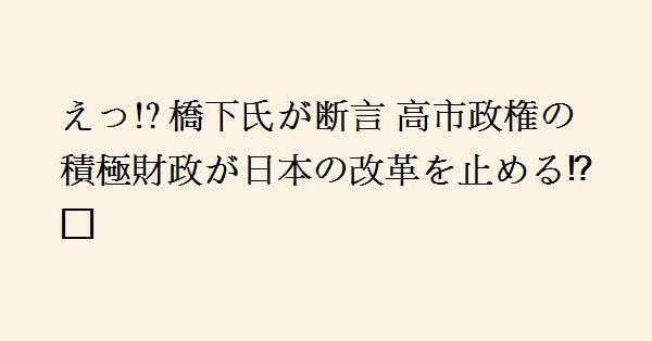 3、積極財政については、景気下支えや物価高対策として一定の効果が期待される一方、財政規律や将来負担への懸念が指摘されているのも事実です。橋下氏の「積極財政が改革を鈍らせる可能性がある」という指摘は、過去の自治体運営の経験に基づく一つの視点として受け止める必要があるでしょう。重要なのは、積極財政か改革かという二項対立ではなく、どの分野に、どの程度の優先順位で予算を配分し、同時にどこで無駄を見直すのかという具体的な設計だと思います。