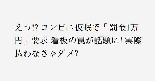 2、コンビニのオーナーの温度感にもよるけども、コンビニで仮眠していてもそのまま何時間でも放置されるか、窓叩かれてオーナーに移動するよう促されるか、パトカー乗った警察官に職質されるかのこの3択がほとんどでコンビニ駐車場で1時間仮眠していた程度でいきなり罰金をオーナーから要求されることはほとんどない