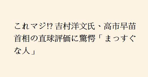 吉村洋文大阪府知事がフジテレビの特番「ホンネ喫茶@永田町」に出演し、高市早苗首相に対する印象を率直に語った。番組中で、18〜29歳の若者を対象にした調査結果が発表され、高市総理を支持する97人、決められない1人、支持しない2人となったことに吉村氏は驚いた。そして、吉村氏は高市氏が連立を組んでいることについて「やりやすいですね」と即答し、彼女を「まっすぐな人」と評した。