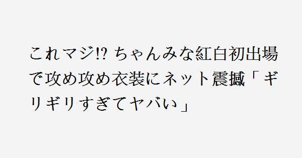 2、ちゃんみなの衣装はこんな感じのものが多いイメージだったから特に問題ないと思って見てました。それにしてもちゃんみなといいHANAといい、歌や踊りの上手さだけでない不思議な魅力があって素晴らしいなぁと思う。紅白を見てなんだかわからないけどこの2組に感動して泣きそうになったくらい。どちらも応援していきたいアーティスト。頑張ってほしいです。