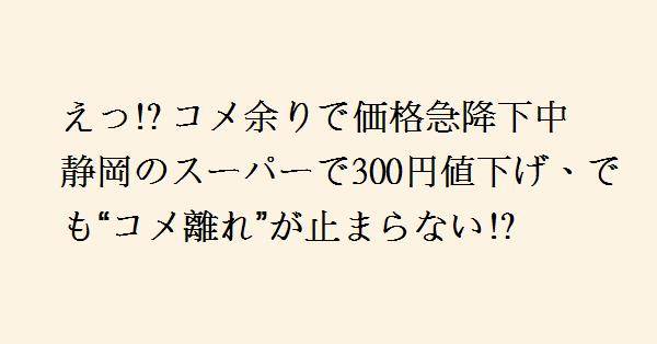 いままさに米の値下げチキンレースが始まっています。2000円台になるまで我慢することが重要です。