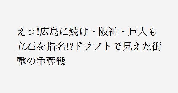 4、ここまで立石に集中はしないと思うなぁ確かに良い選手だけど各球団にもチーム事情があるからなぁスカウトの報告とチーム編成を考えるフロントは色々想定してギリギリまで考えるんじゃないかなまぁ楽しみ楽しみ