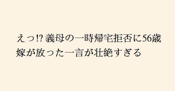 4、せっかく苦労して施設に入れたのに、一時帰宅して里心が付いて施設へ帰らなくなっちゃったら困るよ。奥様が猛反対するのは当然。夫も母親が施設へ帰らなかったら、そのまま自宅で最期まで引き取るつもりなんじゃないだろうか。怖い怖い。
