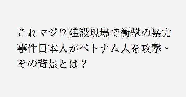 1、暴力を振るっていい理由には全くならないけど、日本で働こうと思ってる外国人が、日本語もですけどマナーなどを含めて学んでから来てないってのはいかがなもんでしょうか。工事現場って危険なこと多いですし、コミュニケーションも大事でしょう。段取りの話をしながら、作業もこなし、安全面の配慮もしながらではないのでしょうか。介護もですが、時には命がってことになる(看取りもあるし)職場で、お世話したらいいってわけじゃなく、コミュニケーション能力も危機管理も、ここに合わせたプランがあるし。
