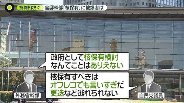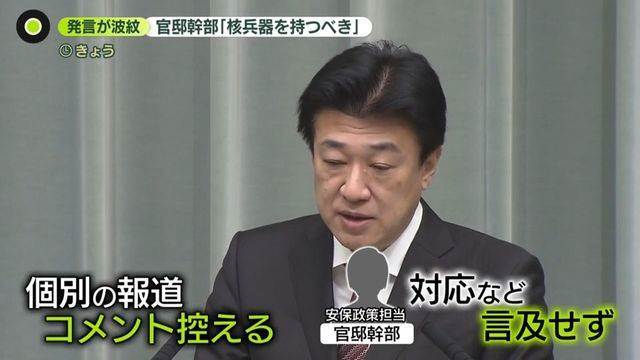 官邸幹部が核兵器保有の発言をしたことが波紋を広げています。発言は「個人の思い」として非公式の場で行われたものですが、日本の非核三原則を揺るがす内容として批判されています。中国政府も「危険な企てが露呈された」と非難しました。被爆者や野党議員、広島などからも強い反発の声が上がっており、政府内でも意見が分かれています。小泉防衛相は「選択肢を排除せずに検討するのは当然」としつつも、「非核三原則を政策の方針として堅持する考えは変わらない」と述べました。