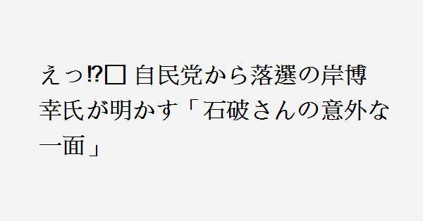 1、何時までも未練たらしく、落選したのは、石破さんのせいみたいな姿勢は、どうかと思います。岸さんには、期待してましたが落選後の姿勢見てがっかりしました。石破さんが嫌われてたとしても当選してる人も居ます。
