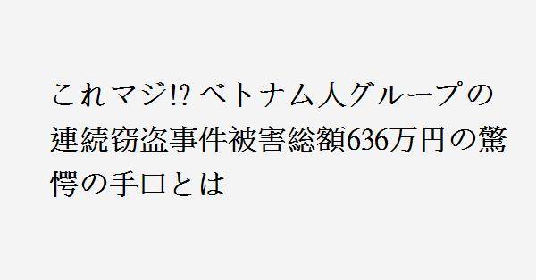 1、宮城や埼玉ではベトナム人が金属窃盗や他の犯罪でも不起訴や無罪になっているからまさかとは思うが不起訴とか止めてくれよな。これだけ事件多いと何もしていないベトナム人や他の外国人の見方を変えたくなる。