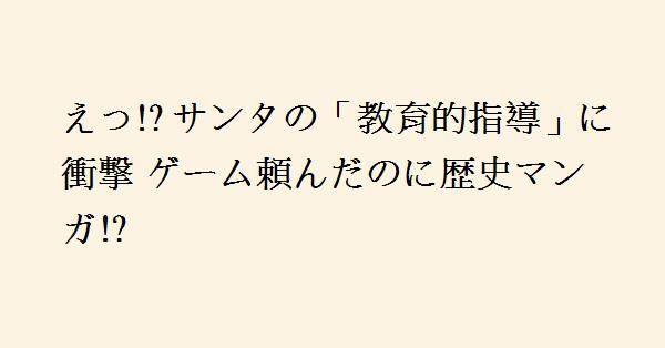 12月25日の朝、子どもたちがサンタからのプレゼントを開ける瞬間は特別ですが、ある親子のエピソードがX(旧Twitter)で話題となっています。子どもがNintendo Switch2を望んだのに、枕元にあったのは「角川まんが学習シリーズ(日本の歴史)」の全巻セット。投稿者は中学受験を考慮した教育的判断としますが、ネット上では「友達との会話ができなくなる」「トラウマになる」との批判が続出。